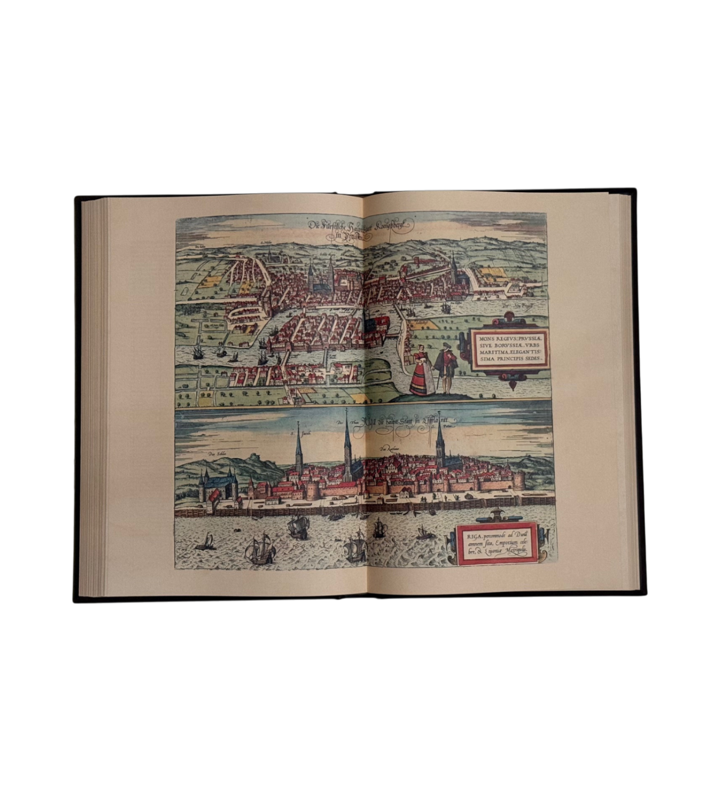 Die meisterhaft kolorierten Kupferstiche beeindrucken durch ihre Detailfülle und Realitätsnähe: nicht nur Architektur und Stadtstrukturen sind erkennbar, sondern auch Szenen des Alltags mit Fuhrwerken, Schiffen, Trachten und lebendigen Genreszenen. Damit vermittelt die Civitates ein einzigartiges Bild der urbanen Welt an der Schwelle von Mittelalter und Neuzeit.